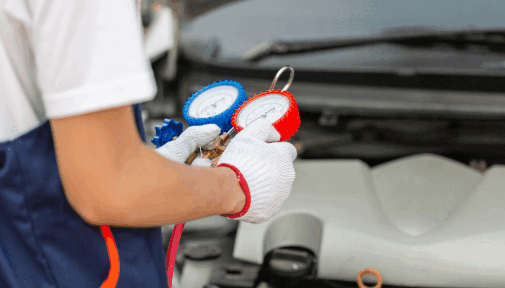 • Visual check: look for oily residue on A/C lines (leak clue).